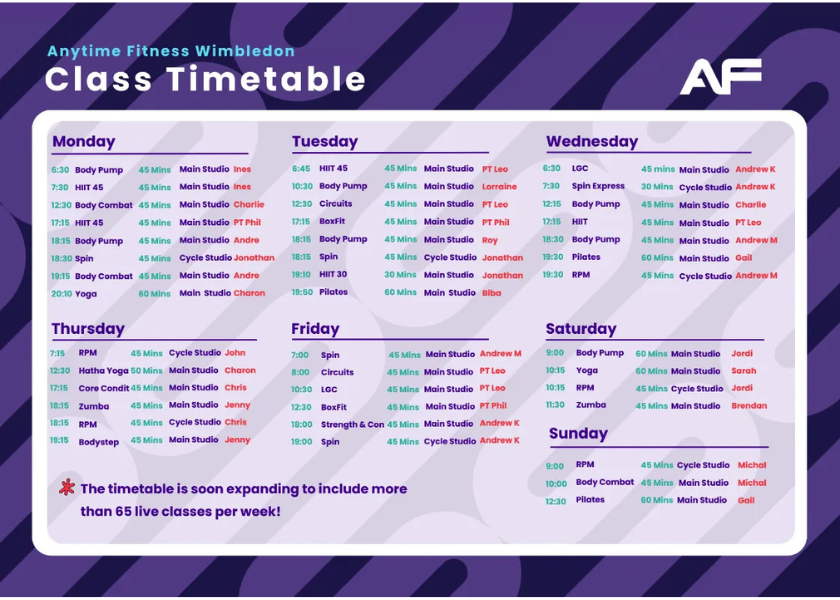 At AF Wimbledon our timetable is packed with an awesome mix of classes delivered by our rock star instructors!
